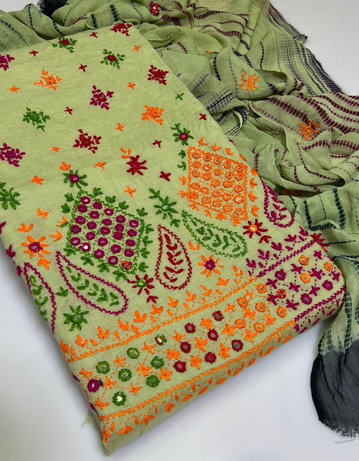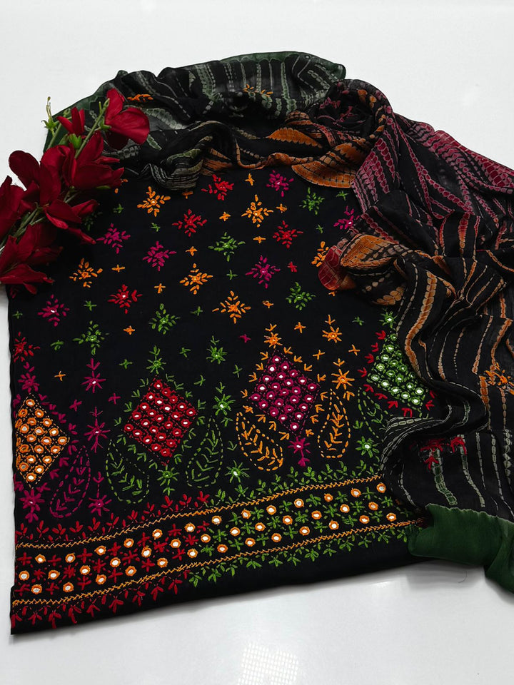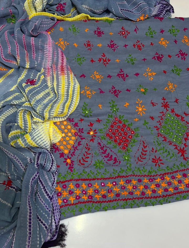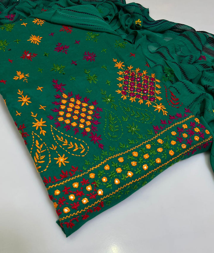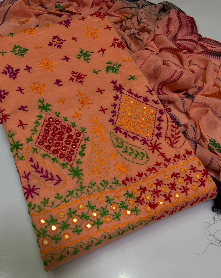 Elevate your wardrobe with this exquisite 3-piece hand embroidered lawn collection, meticulously crafted for the discerning customer. This ensemble features a premium 5-meter trouser, coordinating shirt, and 2.5-yard dupatta, each piece adorned with intricate hand embroidery that showcases traditional artistry. The breathable lawn fabric ensures comfort in warm climates while maintaining an elegant silhouette. Perfect for formal occasions, celebrations, or everyday sophistication, this collection combines timeless craftsmanship with contemporary style. Each garment is designed to complement one another, creating a cohesive, polished look that reflects refined taste and cultural heritage.