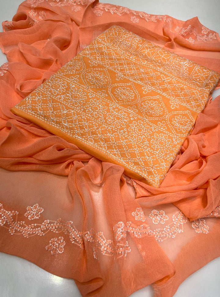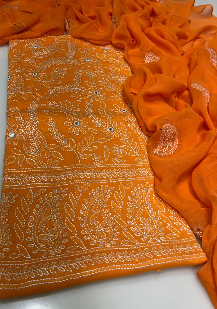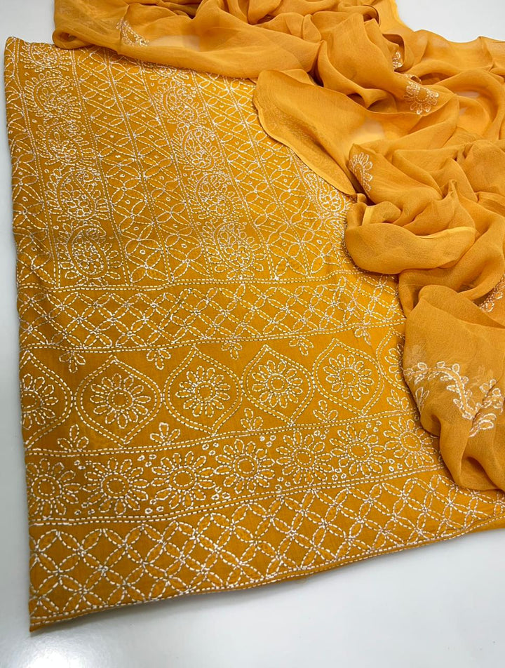 Elevate your wardrobe with this exquisite 3-piece hand embroidered lawn collection, meticulously crafted for the discerning customer. This ensemble features a premium 5-meter trouser, coordinating shirt, and 2.5-yard dupatta, each piece adorned with intricate hand embroidery that showcases traditional artistry. The breathable lawn fabric ensures comfort in warm climates while maintaining an elegant silhouette. Perfect for formal occasions, celebrations, or everyday sophistication, this collection combines timeless craftsmanship with contemporary style. Each garment is designed to complement one another, creating a cohesive, polished look that reflects refined taste and cultural heritage.