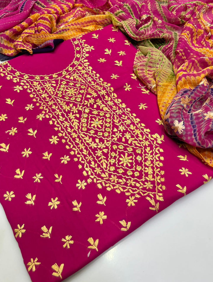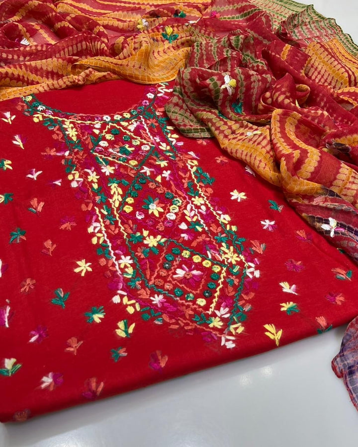Elevate your wardrobe with this exquisite 3-piece hand embroidered lawn collection, meticulously crafted for the discerning customer. This ensemble features a premium 5-meter trouser, coordinating shirt, and 2.5-yard dupatta, each piece adorned with intricate hand embroidery that showcases traditional artistry. The breathable lawn fabric ensures comfort in warm climates while maintaining an elegant silhouette. Perfect for formal occasions, celebrations, or everyday sophistication, this collection combines timeless craftsmanship with contemporary style. Each garment is designed to complement one another, creating a cohesive, polished look that reflects refined taste and cultural heritage.