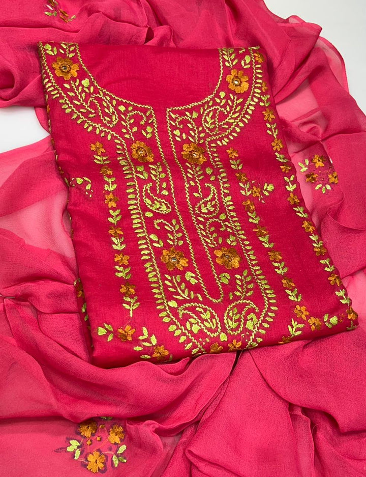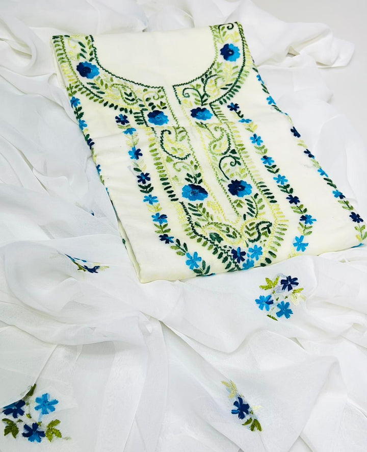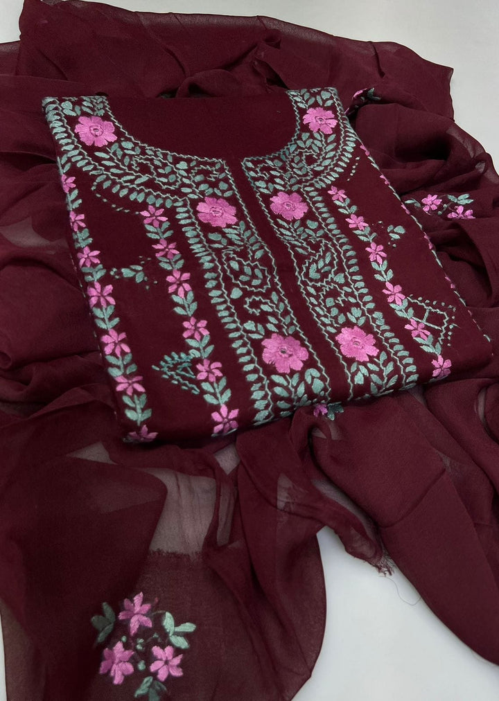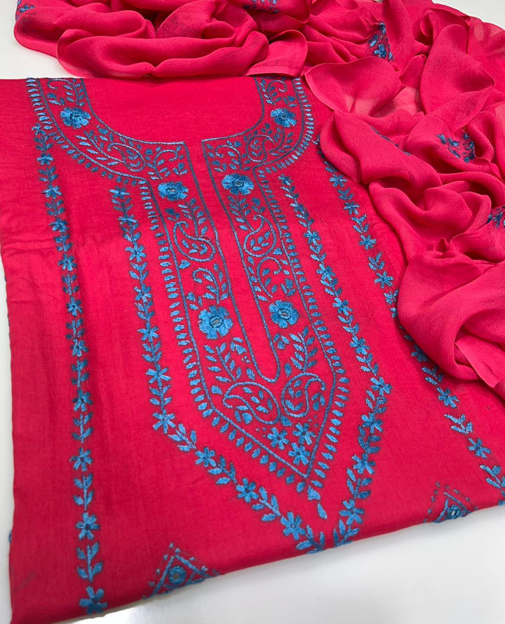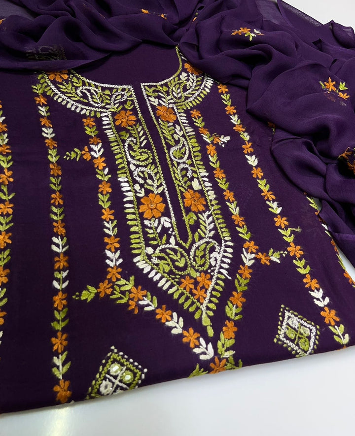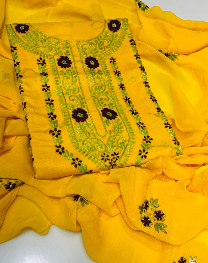 Elevate your wardrobe with this exquisite 3-piece hand embroidered lawn collection, meticulously crafted for the discerning customer. This ensemble features a premium 5-meter trouser, coordinating shirt, and 2.5-yard dupatta, each piece adorned with intricate hand embroidery that showcases traditional artistry. The breathable lawn fabric ensures comfort in warm climates while maintaining an elegant silhouette. Perfect for formal occasions, celebrations, or everyday sophistication, this collection combines timeless craftsmanship with contemporary style. Each garment is designed to complement one another, creating a cohesive, polished look that reflects refined taste and cultural heritage.