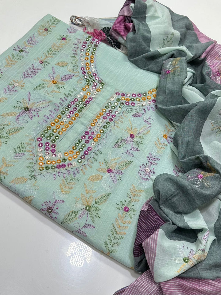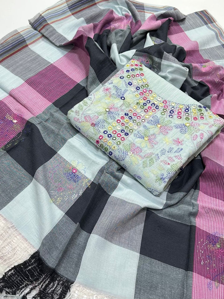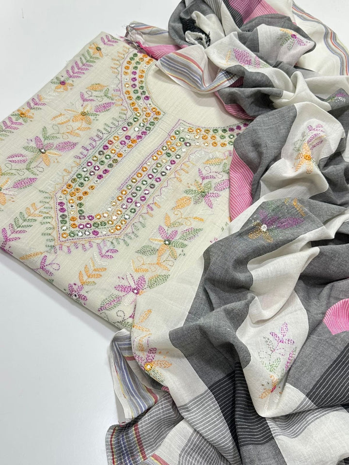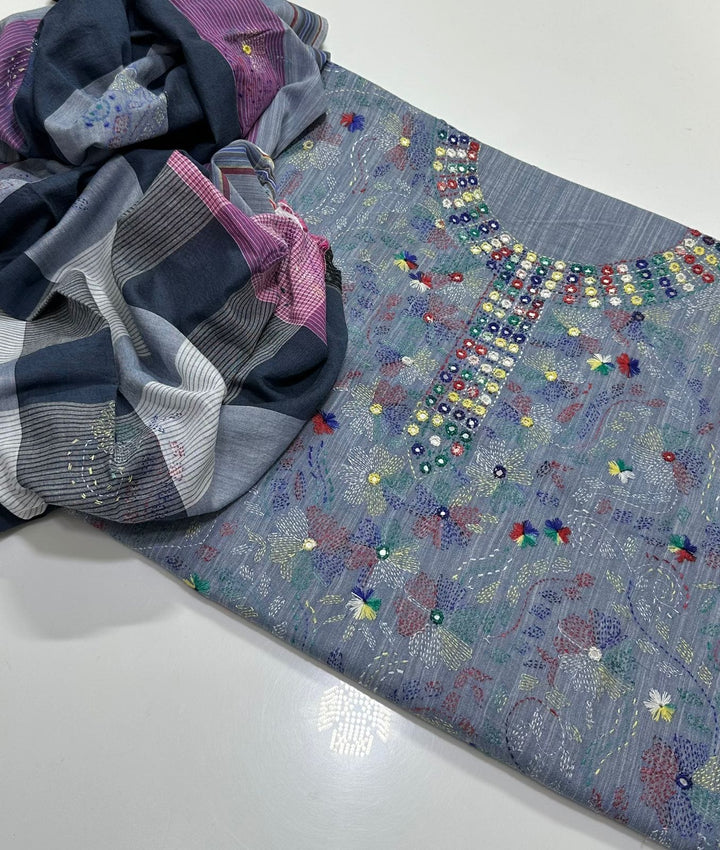 Handmade Embroidered 3 Pc Suit Khadi Khaddar Collection #1