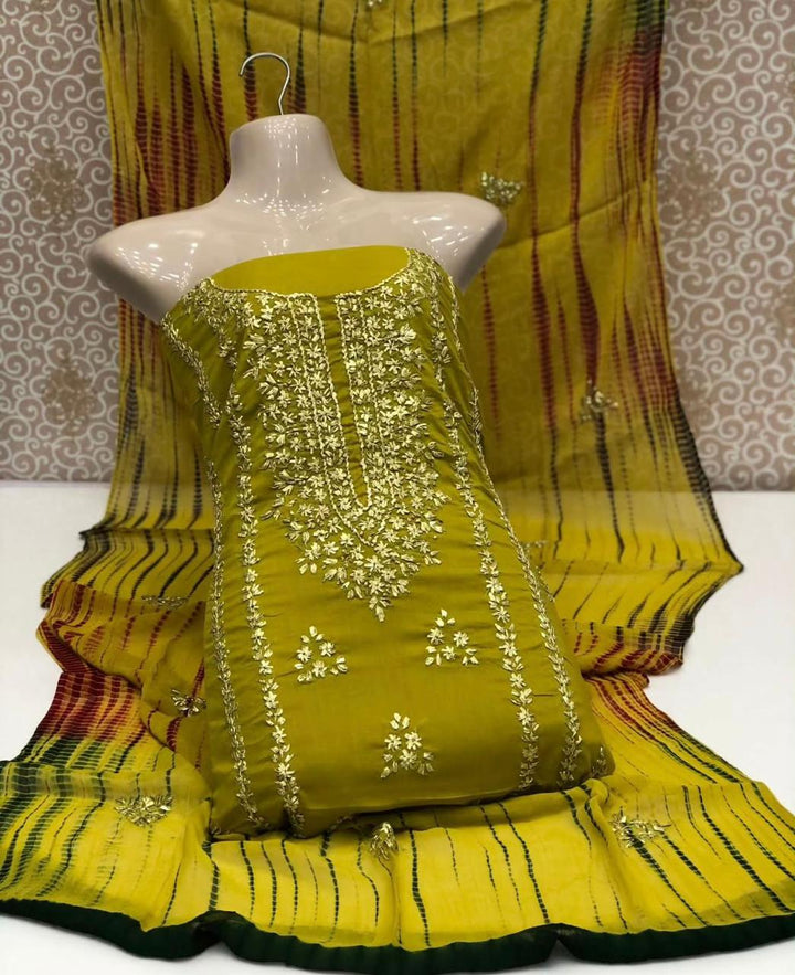 Elevate your wardrobe with this exquisite 3-piece handmade lawn collection featuring intricate embroidery work. This complete ensemble includes a perfectly tailored shalwar kameez with full cutting for comfortable wear, complemented by a 5-meter dupata ideal for versatile styling. The premium lawn fabric ensures breathability and elegance, while the detailed hand embroidery showcases traditional craftsmanship. Whether for casual gatherings or special occasions, this DIY-ready set offers authentic Pakistani fashion with the convenience of pre-cut pieces. Experience timeless style with quality construction and refined design.