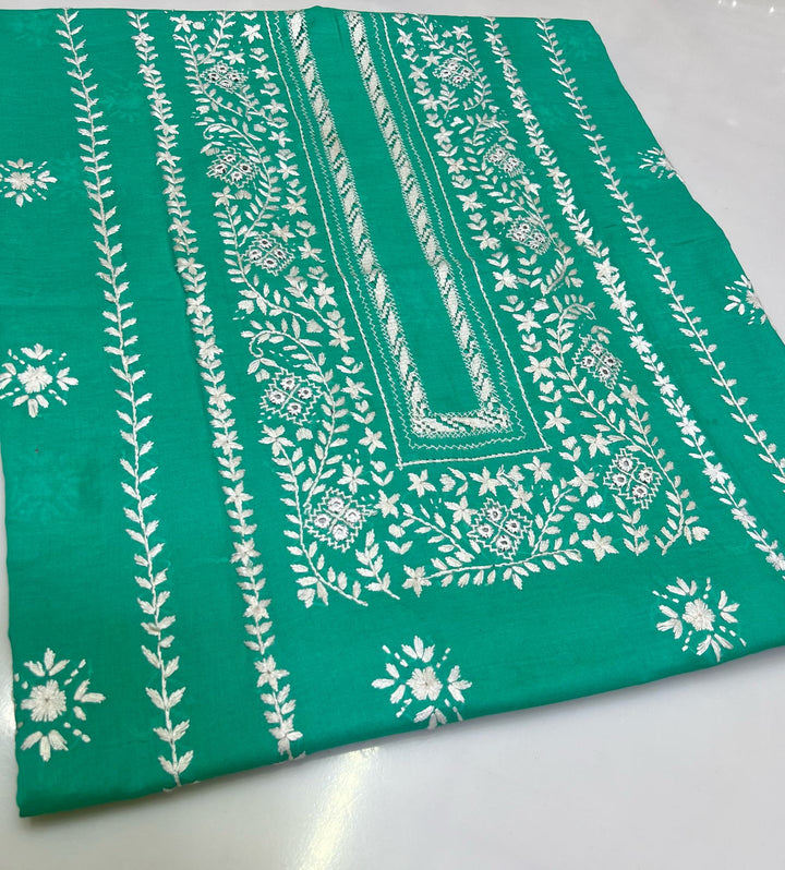 This handmade lawn shirt offers three meters of premium fabric, providing ample material for custom tailoring or multiple garments. Lawn fabric is prized for its crisp finish and breathable composition, making it exceptionally comfortable in warm weather. The handcrafted nature ensures superior quality and attention to detail throughout the weave. With its versatile drape and refined texture, this fabric works beautifully for casual wear, formal occasions, or traditional ensembles. An excellent choice for those seeking authentic craftsmanship and lasting durability.