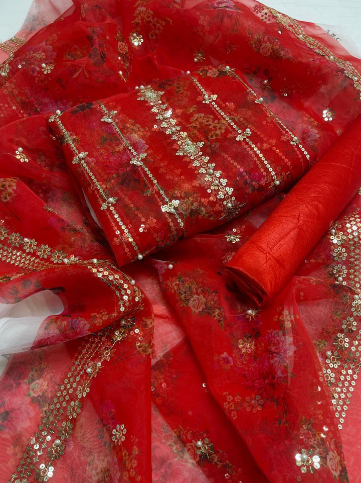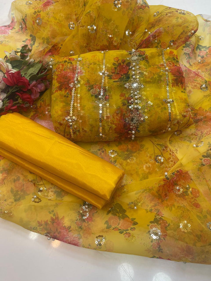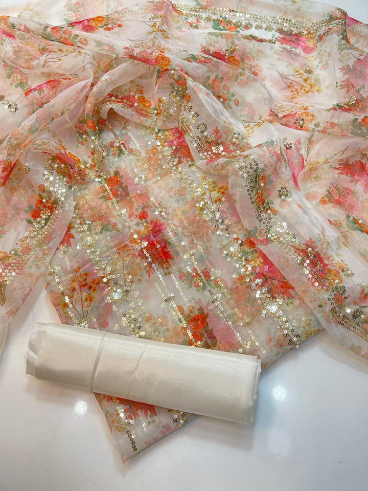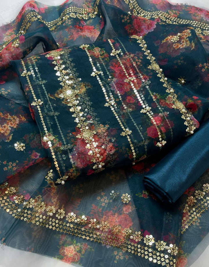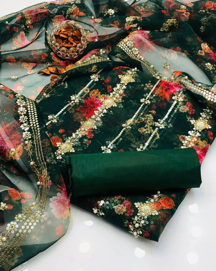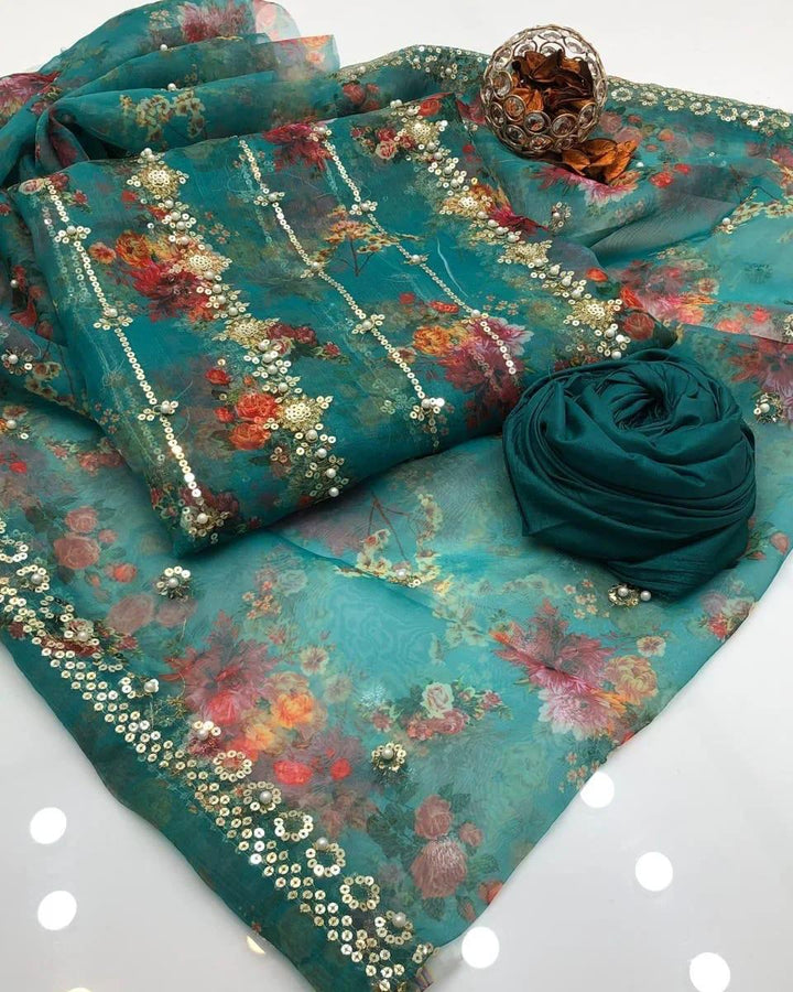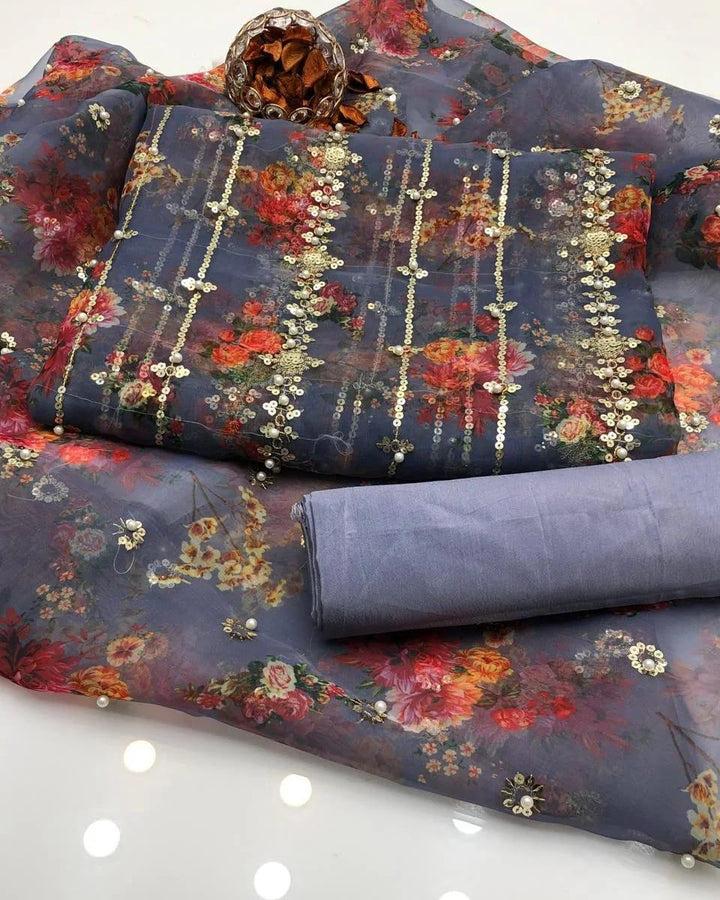 Premium Party Wear 3 pc Organza Digital Printed Pearl Embroidery