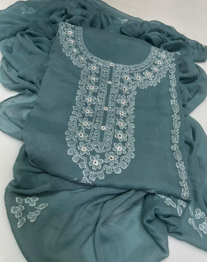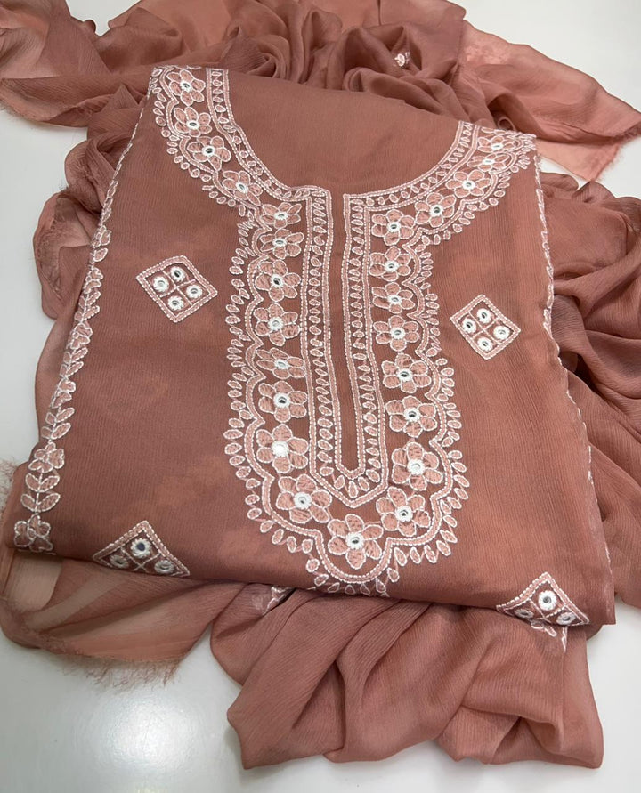 Handmade Embroidered Soft Bamber Chiffon 2-Piece Suit – Collection #12