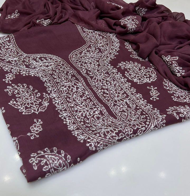 Handmade Embroidered Soft Bamber Chiffon 2-Piece Suit – Collection #13