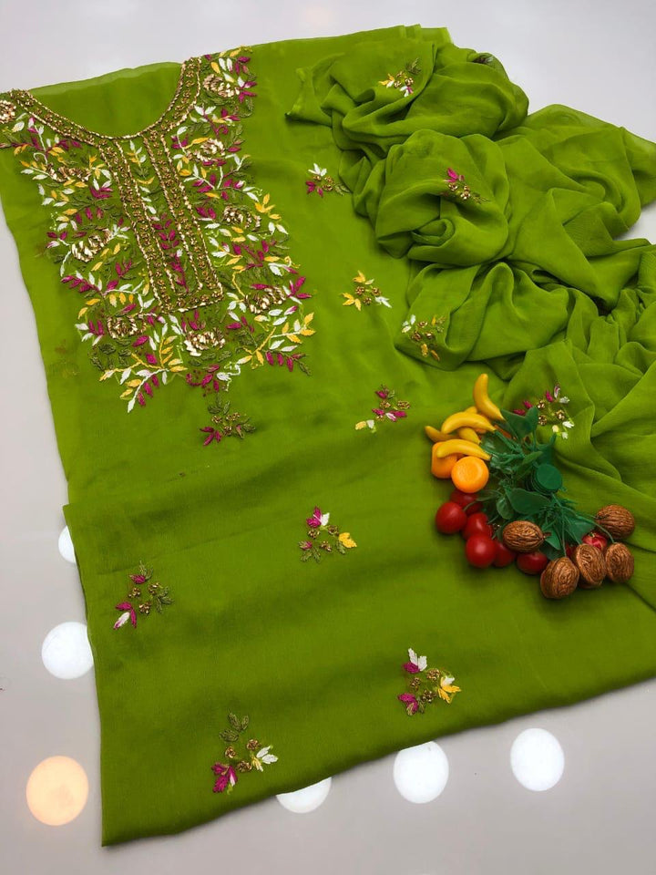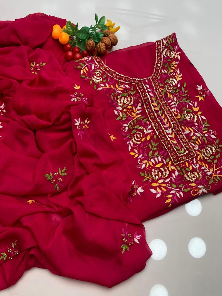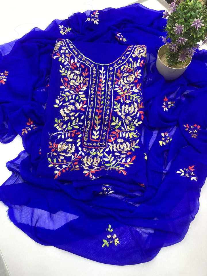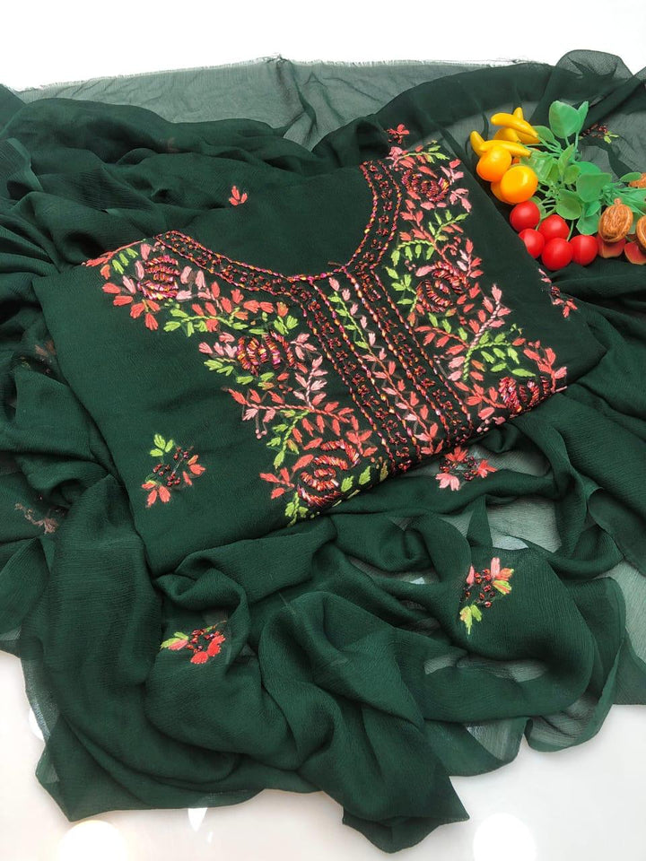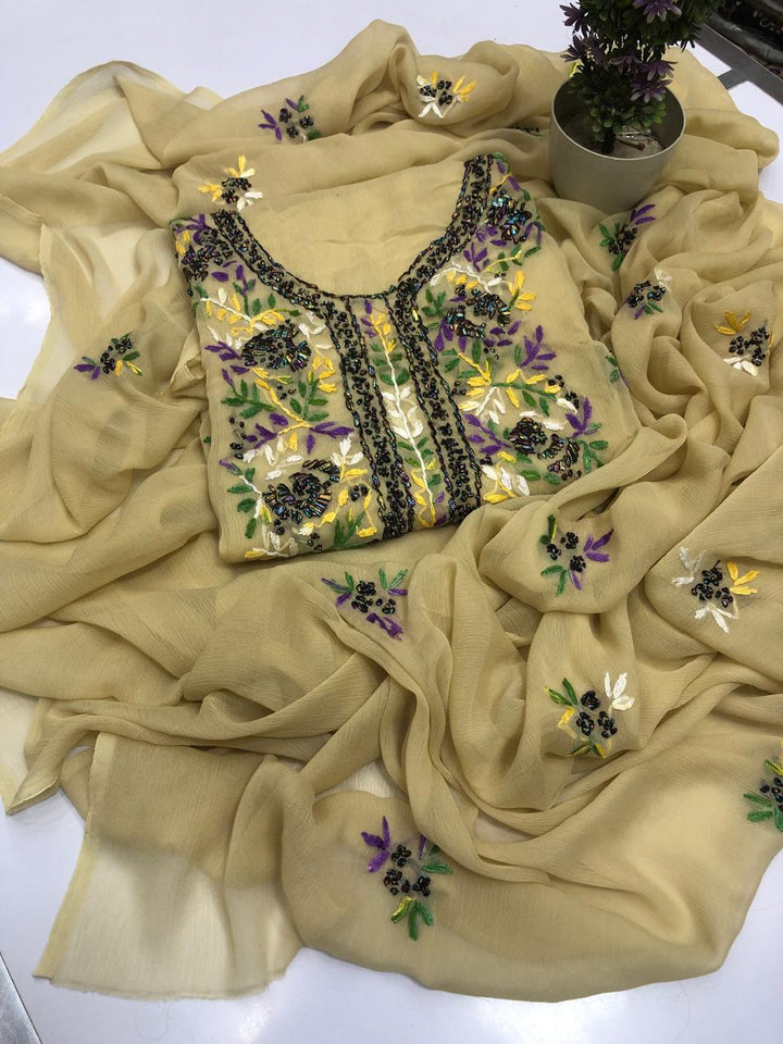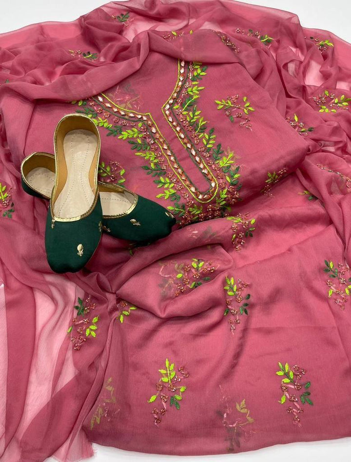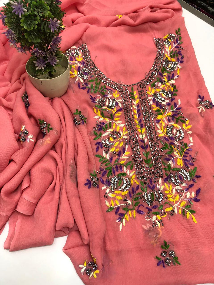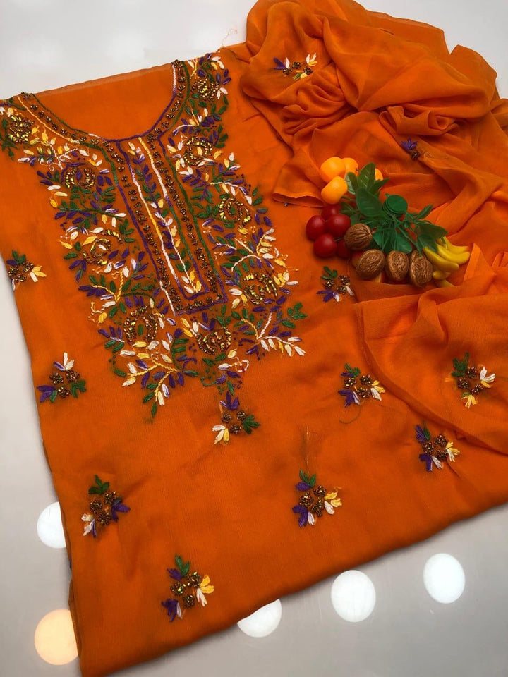 Handmade Embroidered Soft Bamber Chiffon 2-Piece Suit – Collection #19