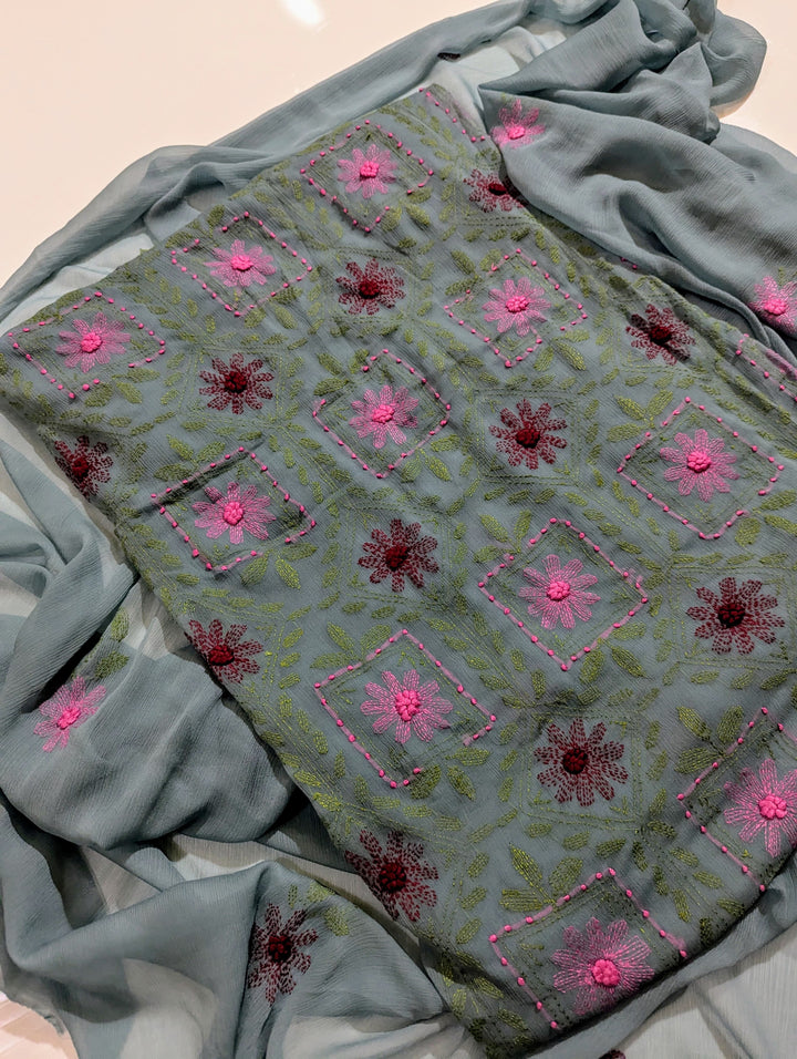 Handmade Embroidered Soft Bamber Chiffon 2-Piece Suit – Collection #21