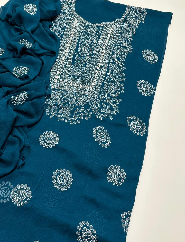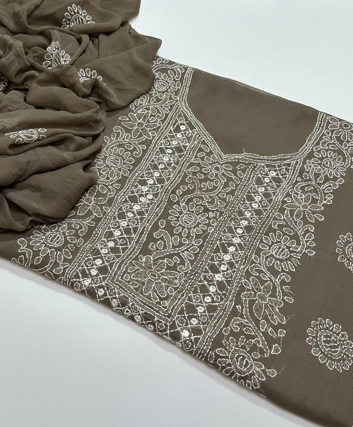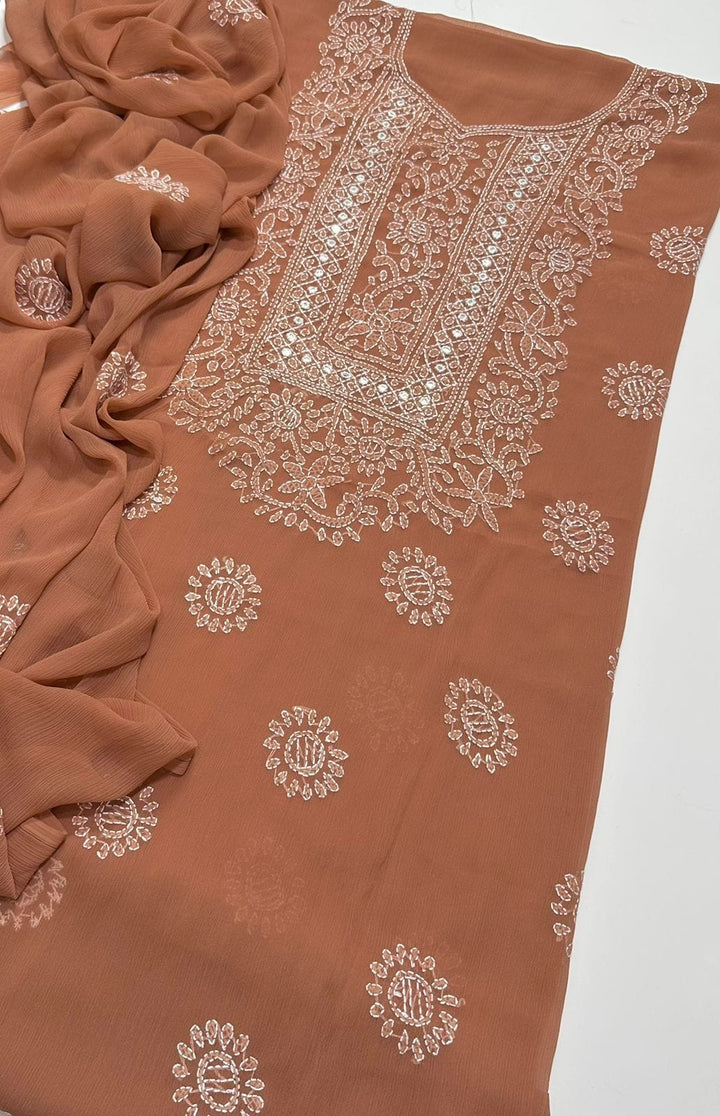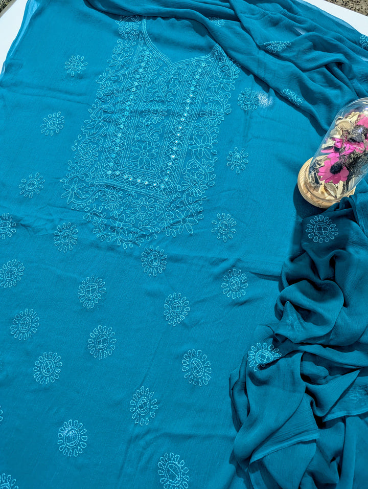 Embrace refined elegance with this premium handmade embroidered chiffon suit, expertly tailored for festive celebrations and semi-formal events. This 2-piece collection features 3 meters of intricately embroidered soft Bamber chiffon shirt paired with a generous dhai gaz dupata, offering both style and practicality. The delicate star embroidery showcases traditional craftsmanship, while the lightweight, breathable fabric ensures all-day comfort and graceful movement. Ideal for weddings, formal gatherings, and special occasions, this suit combines authentic handwork with contemporary design sensibilities, making it a distinguished addition to any formal wardrobe.