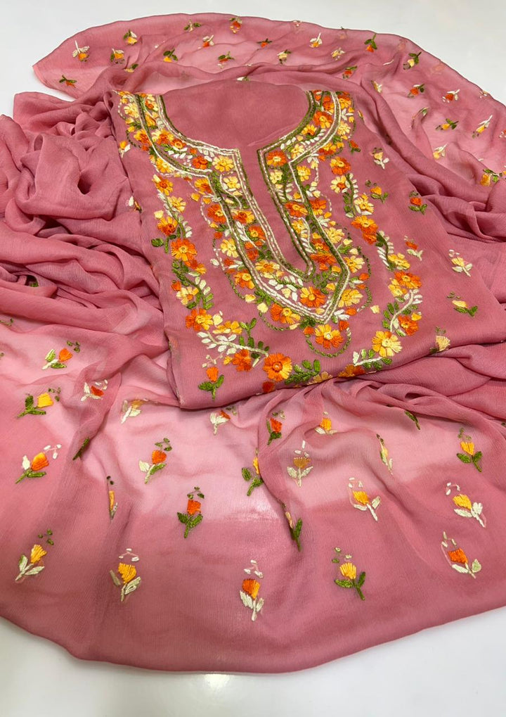 Handmade Embroidered Soft Bamber Chiffon 2-Piece Suit – Collection #7