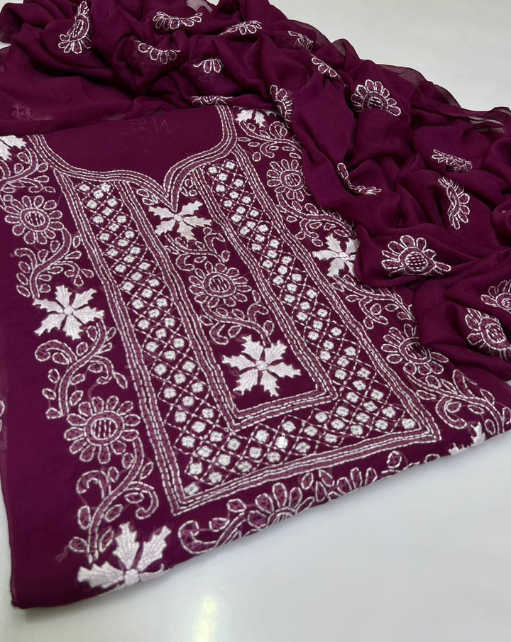 Handmade Embroidered Soft Bamber Chiffon 2-Piece Suit – Collection #8