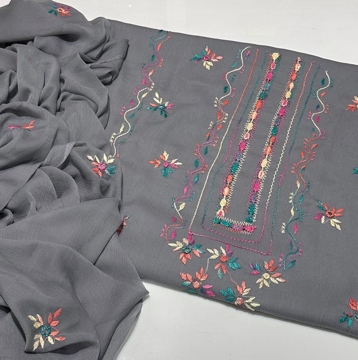 Handmade Embroidered Soft Bamber Chiffon 2-Piece Suit – Collection #25