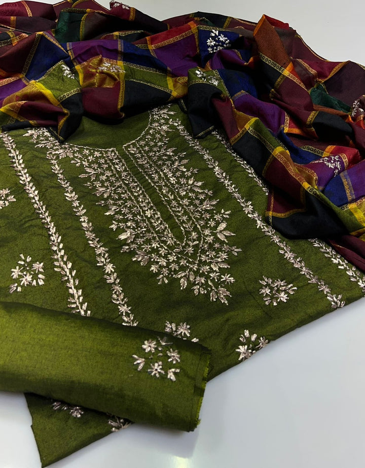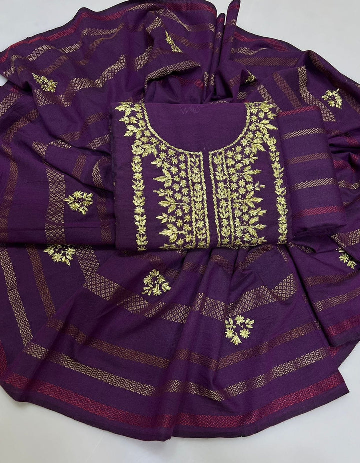 Handmade Embroidered 3 Pc Suit Khadi Khaddar Collection #5