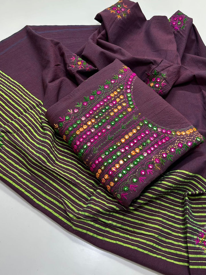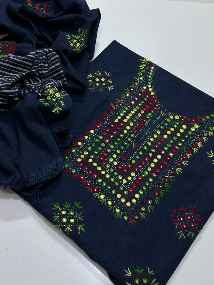 Handmade Embroidered 3 Pc Suit Khadi Khaddar Collection #9