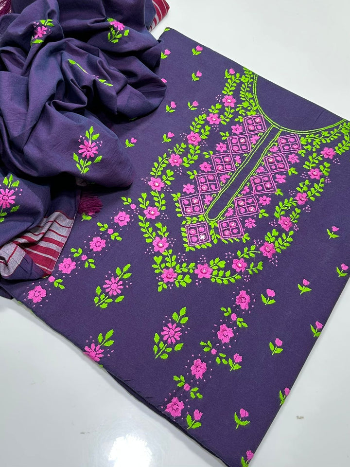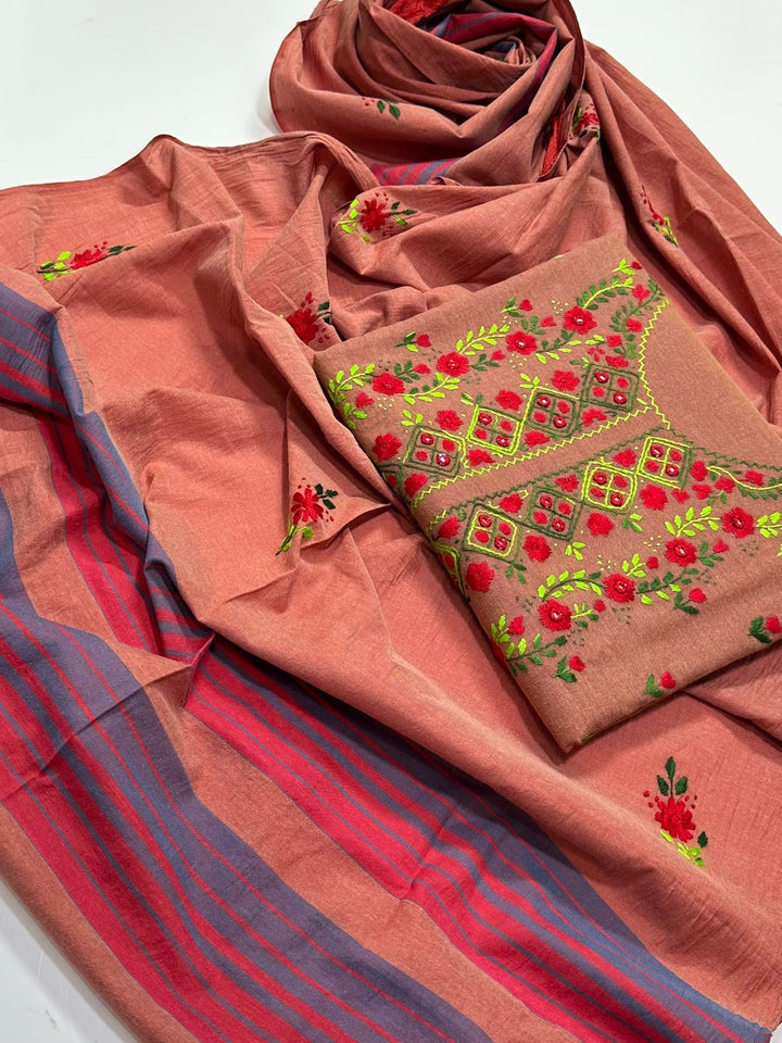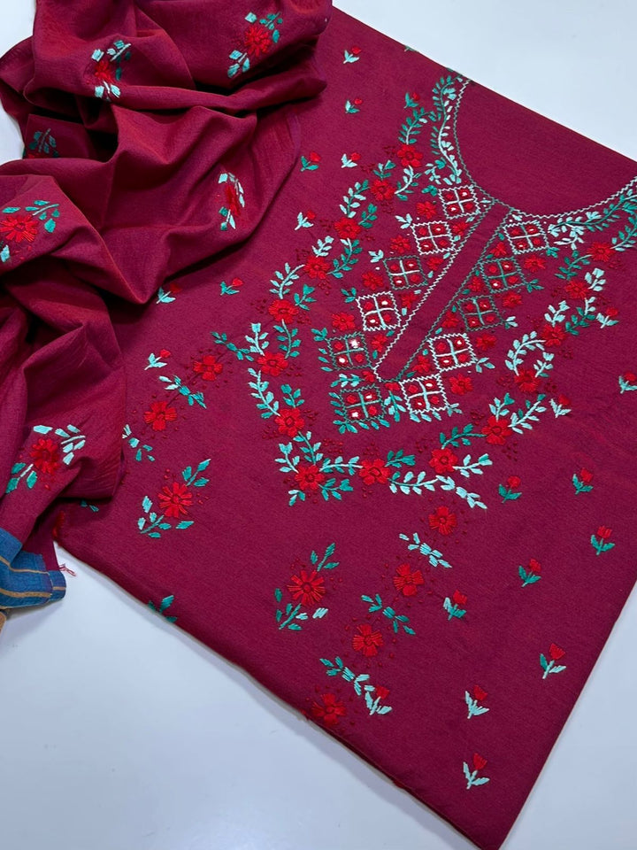 Handmade Embroidered 3 Pc Suit Khadi Khaddar Collection #8