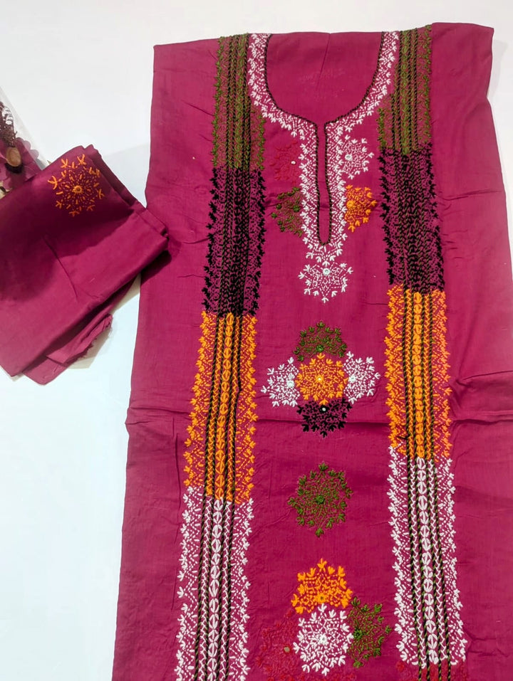 Elevate your wardrobe with this exquisite 3-piece hand embroidered lawn collection, meticulously crafted for the discerning customer. This ensemble features a premium 5-meter trouser, coordinating shirt, and 2.5-yard dupatta, each piece adorned with intricate hand embroidery that showcases traditional artistry. The breathable lawn fabric ensures comfort in warm climates while maintaining an elegant silhouette. Perfect for formal occasions, celebrations, or everyday sophistication, this collection combines timeless craftsmanship with contemporary style. Each garment is designed to complement one another, creating a cohesive, polished look that reflects refined taste and cultural heritage.
