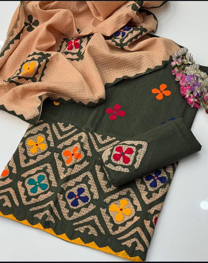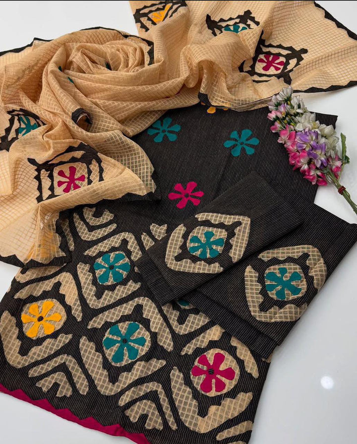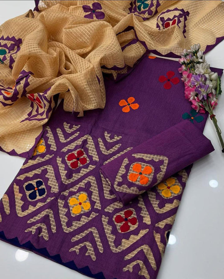 Handmade Embroidered 3 Pc Suit Khadi Khaddar Collection #7