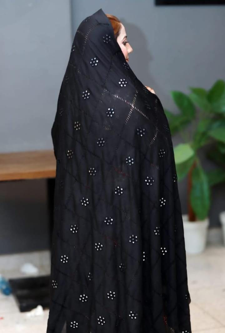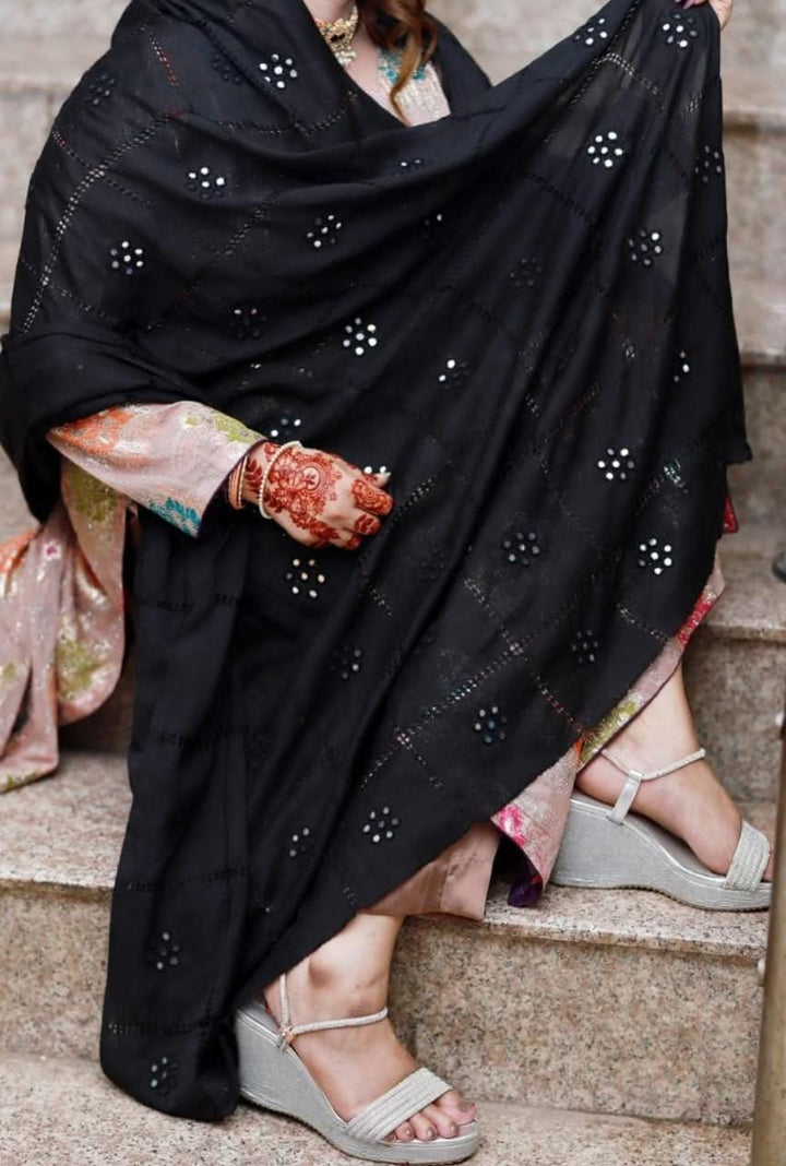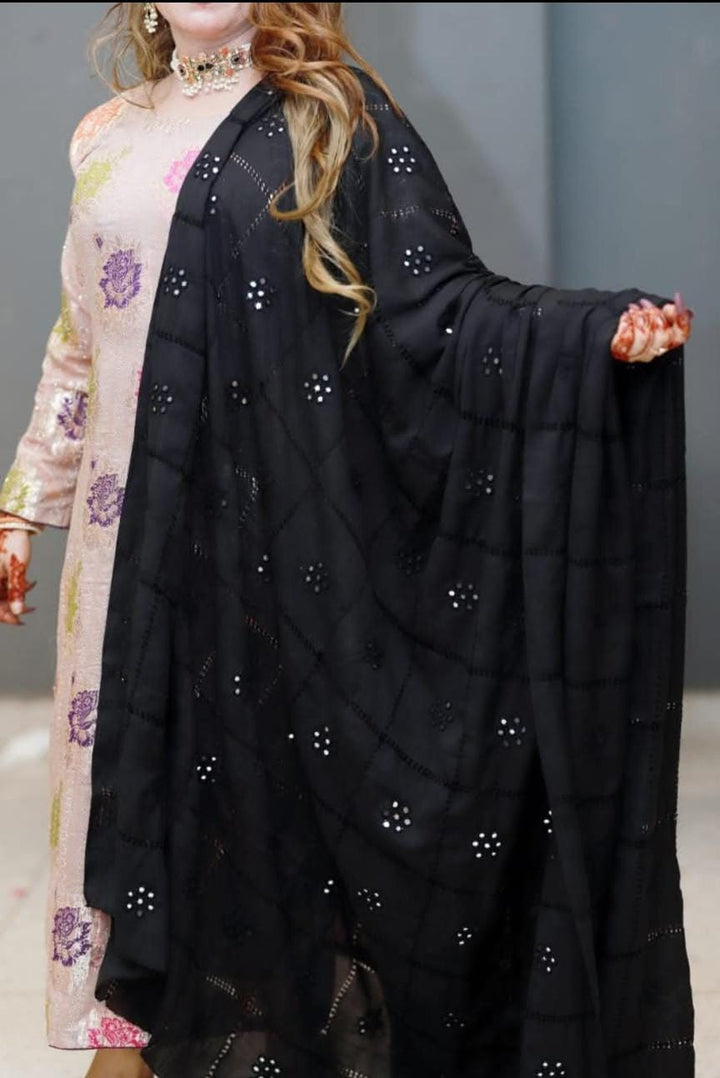 Elevate your wardrobe with this stunning Swiss Lawn Chaddar, adorned with intricate handmade mirror work. Crafted from premium Swiss Lawn fabric, this piece combines breathable comfort with sophisticated artisanal detailing. The carefully placed mirror embellishments catch light beautifully, creating an eye-catching shimmer perfect for festive occasions and formal gatherings. Each mirror is hand-applied by skilled craftspeople, ensuring quality and authenticity. The lightweight, versatile design makes it an essential addition to any traditional or contemporary ensemble. Ideal for those seeking refined elegance with genuine handcrafted artistry.
